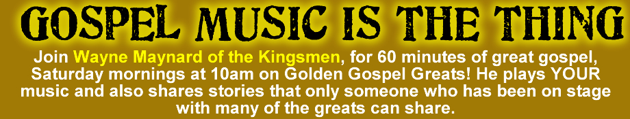 Programming on Golden Gospel Greats is a mixture of golden classics, today's best gospel and songs that will touch your heart. You'll hear many hard to find songs, all in high quality stereo, bringing out every word and every note in each song. As our library continues to grow, we invite you to make a request/suggestion of songs YOU love. Please tell a friend or two about Golden Gospel Greats... they will thank you for it.
